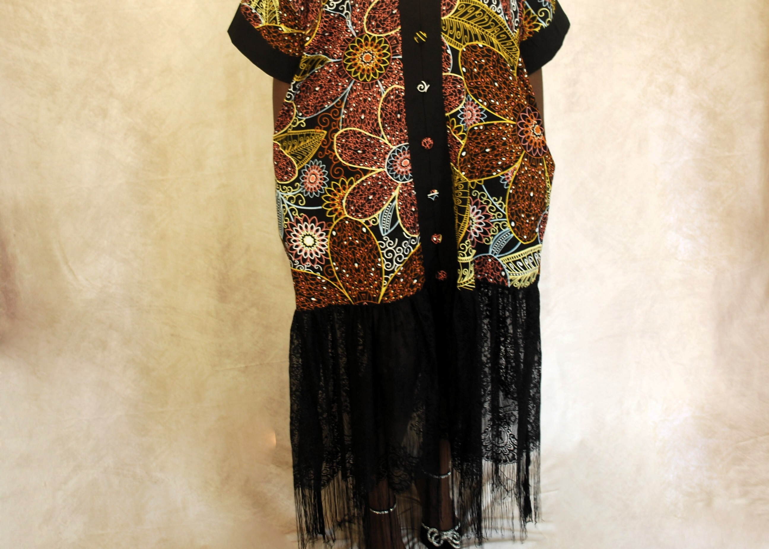 Ireti, meaning “hope,” is a tribute to resilience and inner light. With its structured front, bold prints, and fringe hem, this piece feels both regal and grounded. It’s a statement dress — one that says you’ve been through things and come out shining.